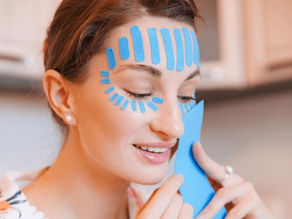 Кинезиотейпы нашли также практическое применение в области красоты. Тейпинг для лица относительно новая, но уже популярная процедура, получившая много одобрительных отзывов за эффект, которого позволяет достичь за короткий промежуток времени, ведь результат заметен уже после первого применения. Чаще тейпы для лица применяют для: